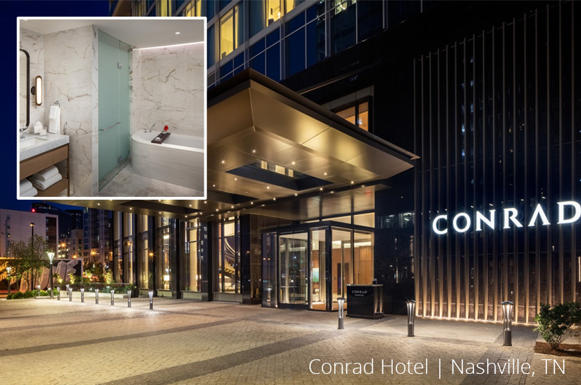 After traveling and kickin’ up your cowboy boots, you want to know your shower will be there for you to wind down and rejuvenate. Experience our HMI Shower Enclosure at your stay at the Conrad, allowing you to recharge. Not just beautiful rooms but a luxurious bathroom to come back to after a long day.